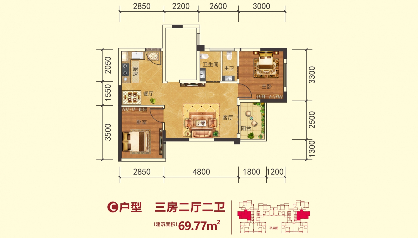 69㎡3房2厅2卫