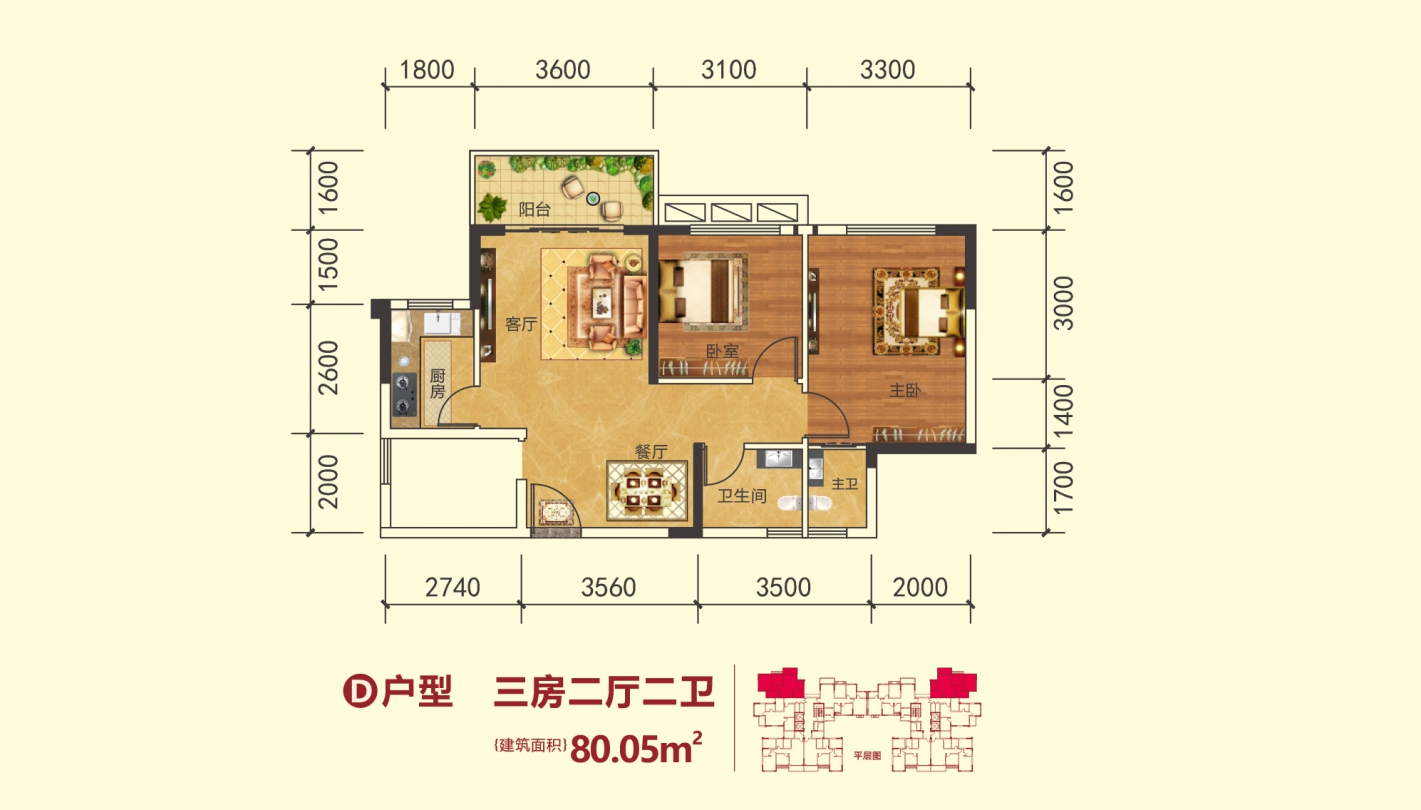 80㎡3房2厅2卫